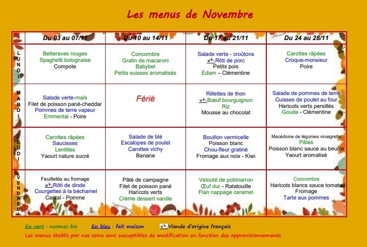 les menusde novembre 2025
